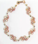 (3) メタルビーズを1個拾い、g、hのビーズに糸を通す。そして糸を強く引っ張り、形を整える。